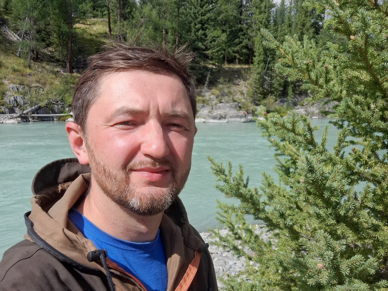 Последний спуск — сначала по безжизненному курумнику, словно по чужой планете, затем через полярную тундру, а потом появляются лиственницы и кедры — уже почти как дома, в родной сибирской тайге. Внизу — броды мелких речек. В одном из них огромные валуны: думал, придётся цеплять лебёдку, но каким-то чудом прохожу по верхушкам камней, даже не задев днищем. Ещё немного грязи и лесной дороги — и вот он, обрыв, а внизу трасса, по которой несутся машины. Цивилизация.