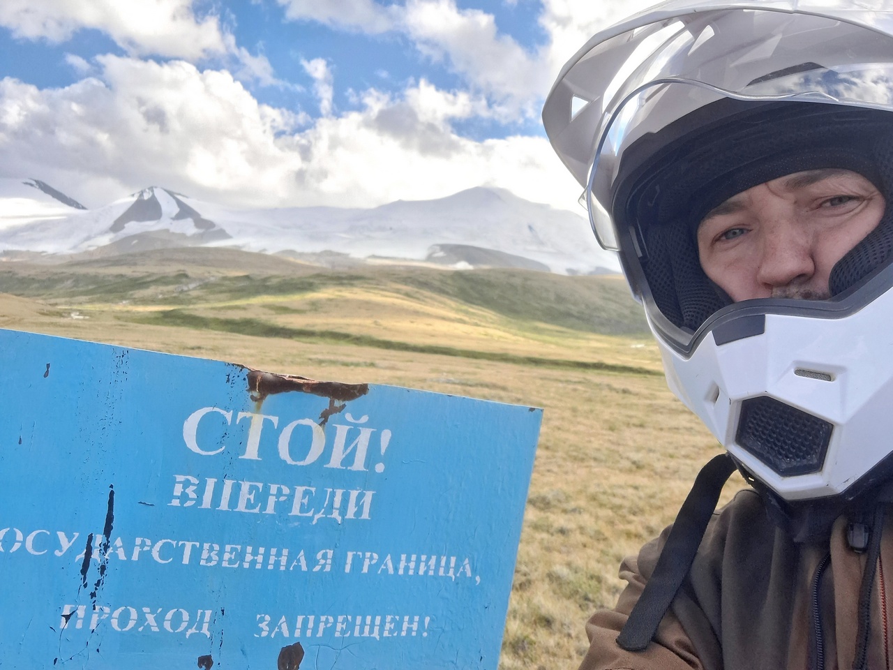Маршрут — к границе с Казахстаном, затем к озеру Укок и, наконец, возвращение к цивилизации. Западная часть плато встречает холмами и северной растительностью: карликовые берёзки, валуны, покрытые лишайником, и безжизненные озёра. За последние дни людей почти не видел, и теперь я сам себе спутник и собеседник — веду диалоги вслух, делюсь впечатлениями с пустотой. Дорога к границе сырая, но не грязная. Вот он, забор с колючей проволокой и вновь запрещающая табличка. Нельзя — значит, нельзя.